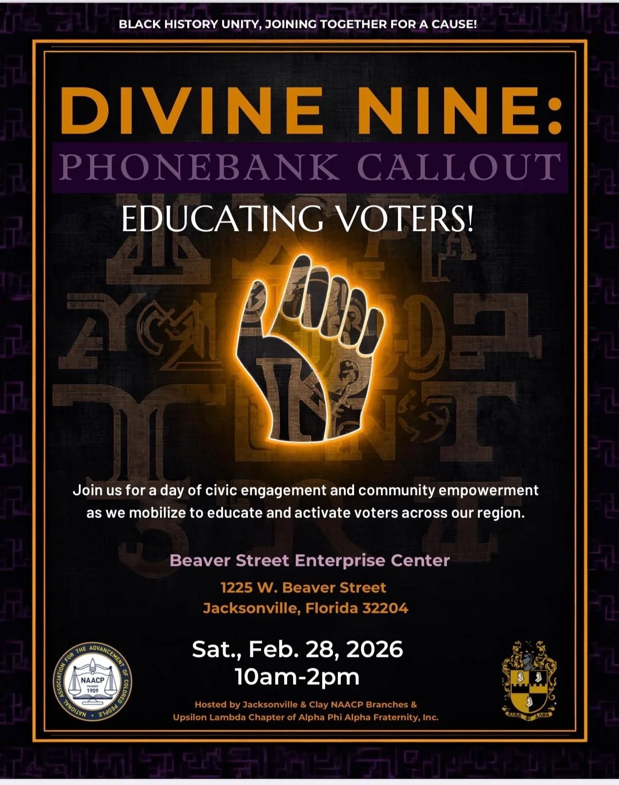 Upcoming Clay County NAACP, alongside the League of Women Voters Jacksonville First Coast, for a non-partisan educational session. This is a space to learn, ask questions, and better understand how to navigate civic processes with confidence. Past Join the Jacksonville and Clay County NAACP, alongside Divine Nine partners, for a community phone bank dedicated to educating and activating voters. Lend your voice and be part of the work.